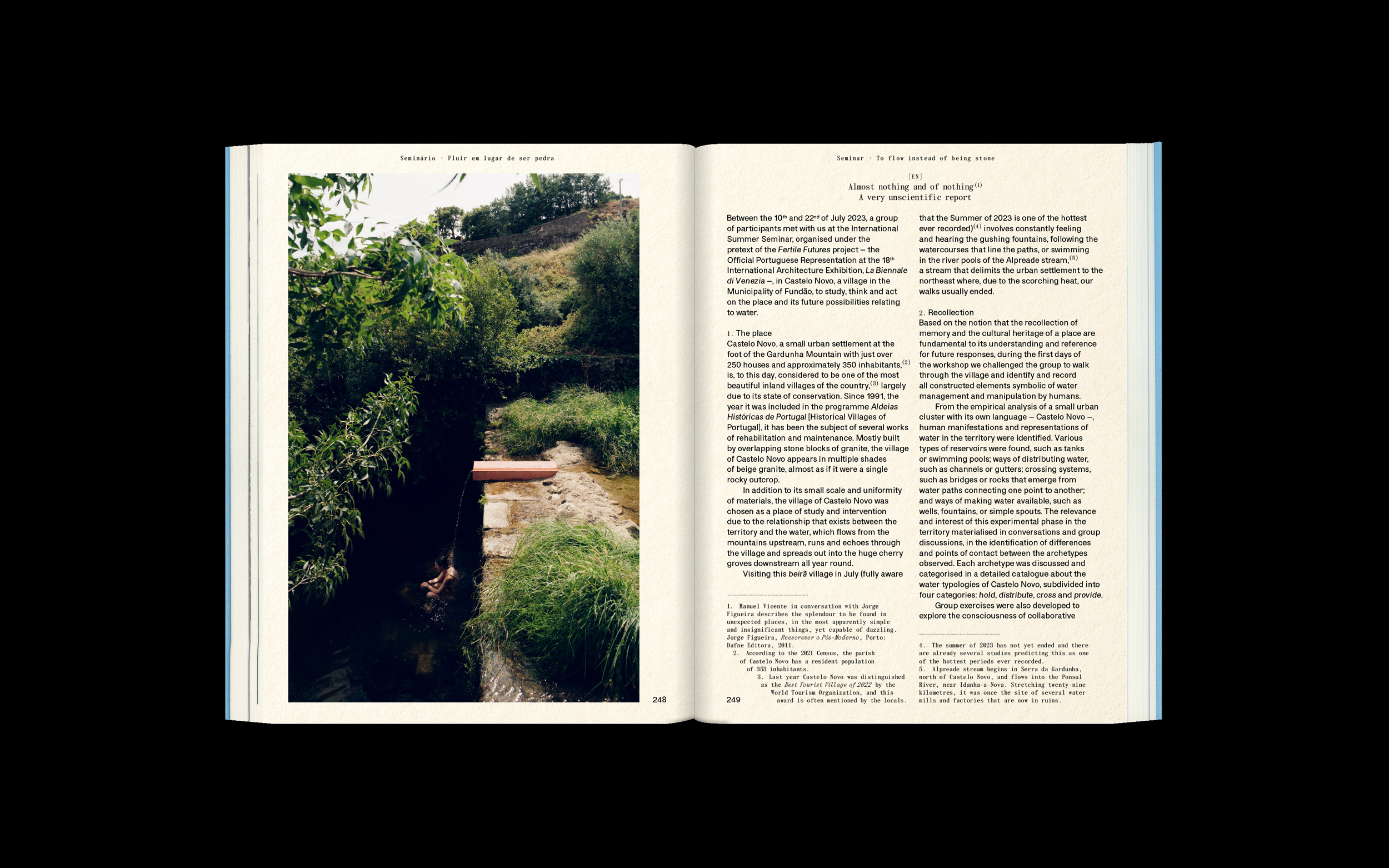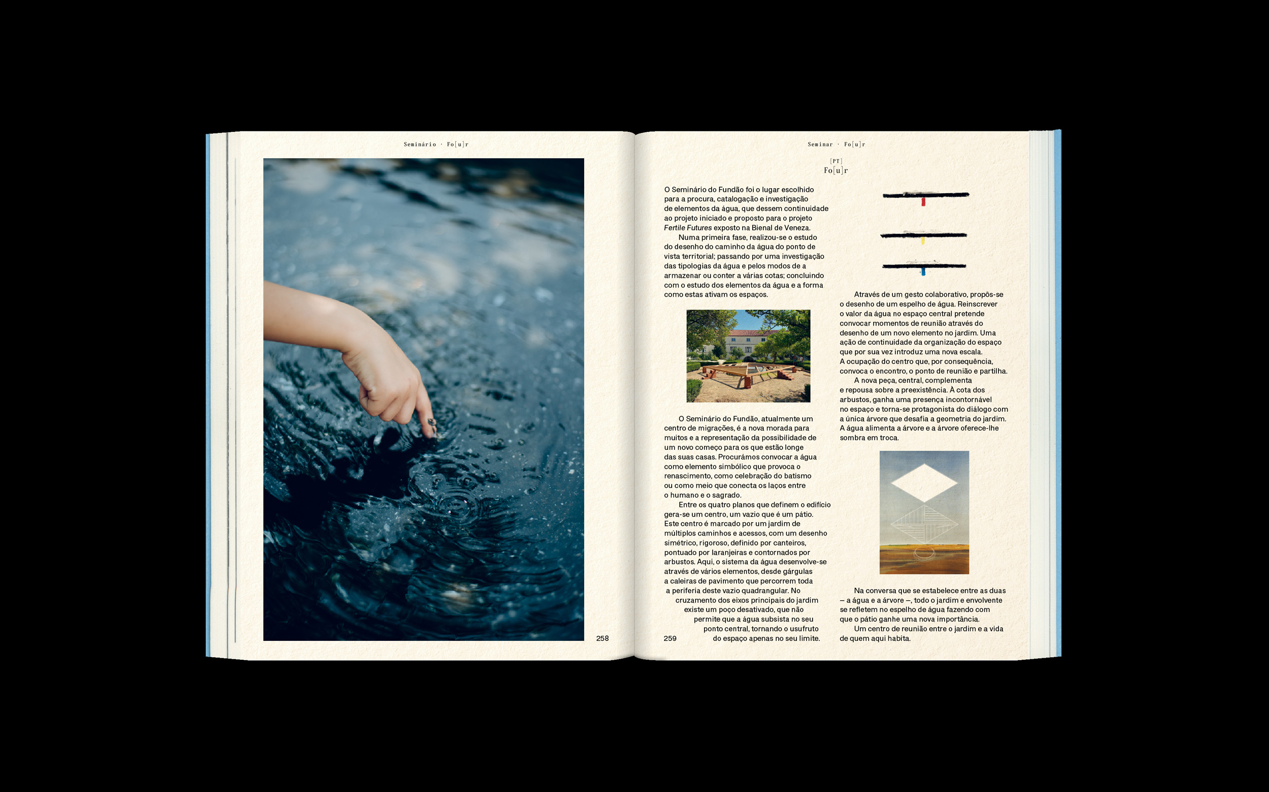 A publicação Fertile Futures apresenta o programa desenvolvido no contexto da Representação Oficial Portuguesa na 18.ª Exposição Internacional de Arquitetura — La Biennale di Venezia.Lançado no dia de inauguração da exposição, este primeiro volume revela as premissas do projeto Fertile Futures, apresentando o tema da proteção, gestão e o futuro da água doce, a partir do registo processual dos primeiros momentos do projeto. Reúne, a partir da transcrição das intervenções de especialistas e consultores na primeira Assembleia de Pensamento, a partilha de conhecimento que marcou o arranque do laboratório de projeto e também regista e acompanha o processo laboratorial das sete Oficinas da Hidrogeografia. Este volume inicial desvela as origens dos modelos propositivos em exposição no Palazzo Franchetti em Veneza, entre 20 de maio e 26 de novembro de 2023.